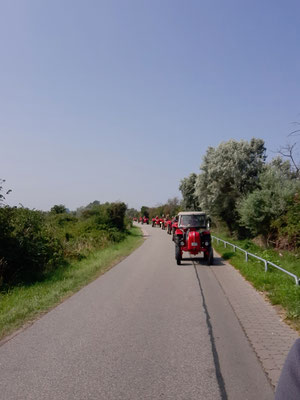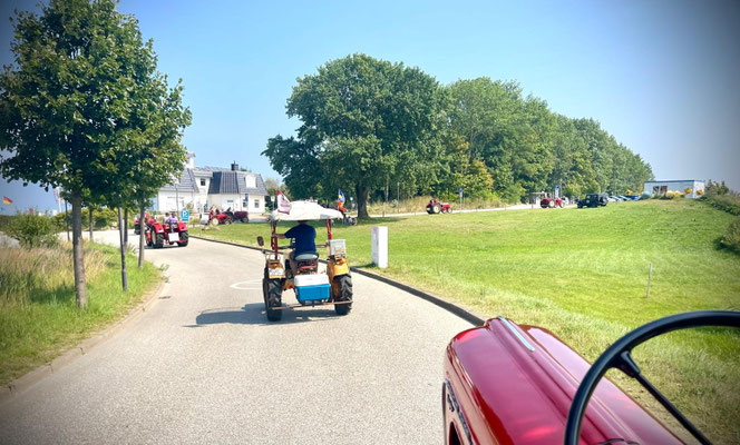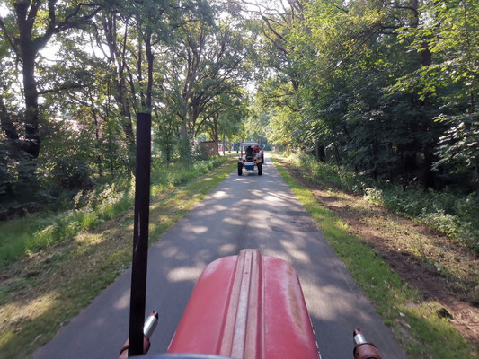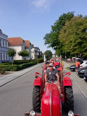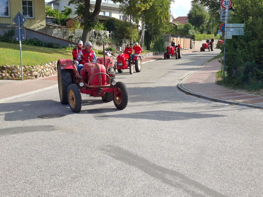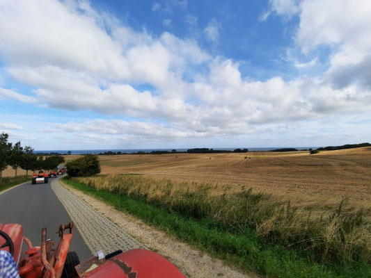 Karneval im Sommer, so ähnlich kamen wir uns vor als wir mit unseren Treckern die Ostseeallee entlang fuhren. Hunderte Foto's wurden sicher gemacht, die Leute winkten und freuten sich über unsere Parade. Keiner hielt sich die Ohren oder die Nase zu. Irgendwie sind die Leute in dieser Gegend besser drauf!