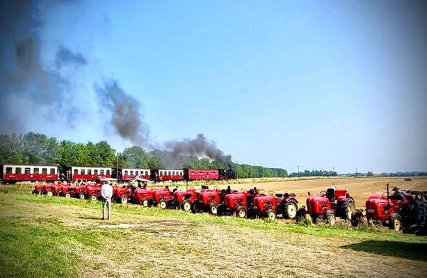 Kaum hatten wir unsere Trecker am Reiterhof H.J. Böldt abgestellt, dampfte auch schon die berühmte Dampflok Molli an uns vorbei. Die Bäderbahn ist eine dampfbetriebene Schmalspurbahn in Mecklenburg-Vorpommern. Ihre Spurweite beträgt 900 Millimeter. Die 15,43 Kilometer lange Strecke wird heute vom Eisenbahnverkehrsunternehmen Mecklenburgische Bäderbahn (MBB) betrieben und verbindet Bad Doberan mit Heiligendamm und dem Ostseebad Kühlungsborn.