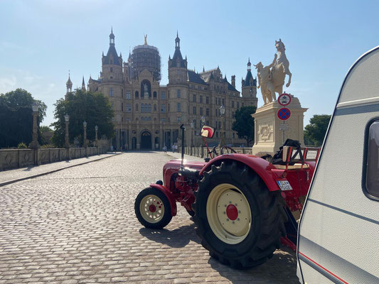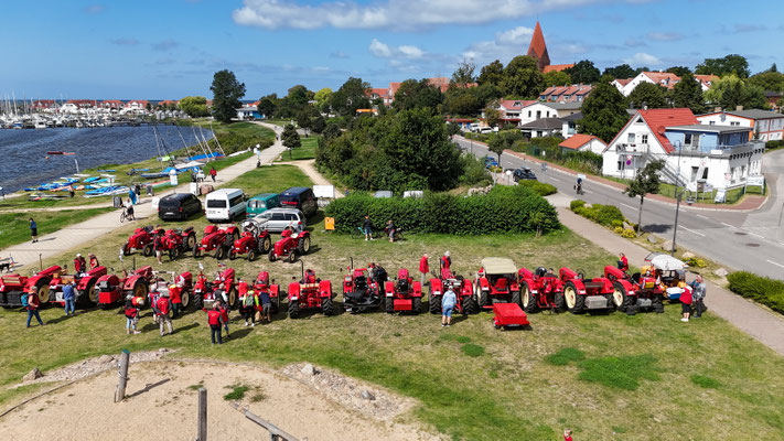Neuer Tag, neues Glück. Gestern waren wir an der Ostsee, heute geht es auf die Ostsee. Anlaufpunkt der Schiffsanleger in Rerik. Kaum waren wir dort auf den Parkplatz gefahren, waren auch schon die ersten Schaulustigen vor Ort. Mit 20 Treckern fällt man einfach auf und zieht Menschen magisch an.