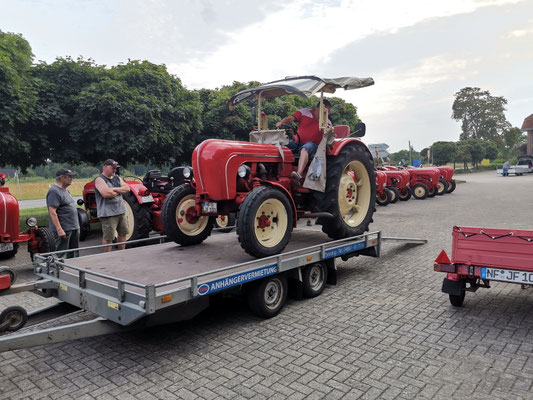 Manche bringen ihren Trecker auf dem Trailer, Andere reisen auf Achse mit dem Wohnwagen oder ohne Wohnwagen an. Es gibt auch Leute die reisen nur mit dem Auto an und bekommen einen Trecker und "All Inclusive" Vorort. Hier lieben Dank an Norbert und Anette.