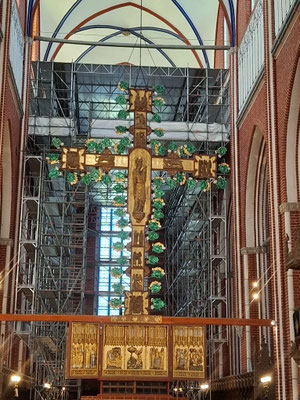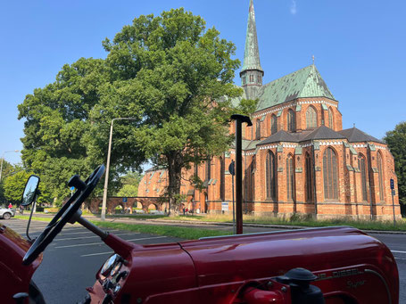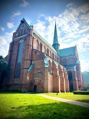 Aber wenn Engel reisen lacht die Sonne, zwar am Anfang noch ein wenig spärlich. Aber zunehmend mehr und so starteten wir nach einer kurzen Ansprache durch Klaus auf herrlichen Nebenstraßen in Richtung Bad Doberan und dort zum Wahrzeichen der Stadt, dem Doberaner Münster.