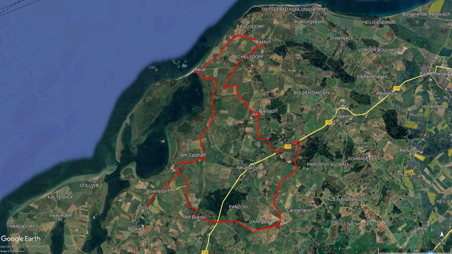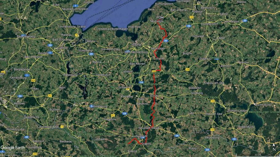 Unser heutige Fahrstrecke mit ca. 137 km für die Gruppe aus Eldena.